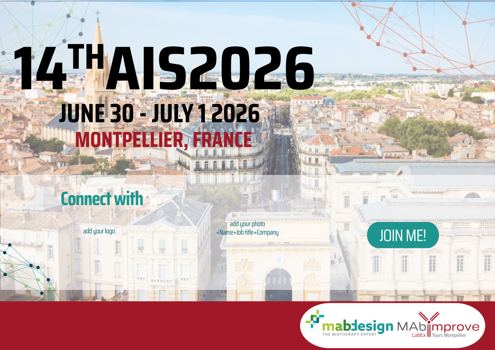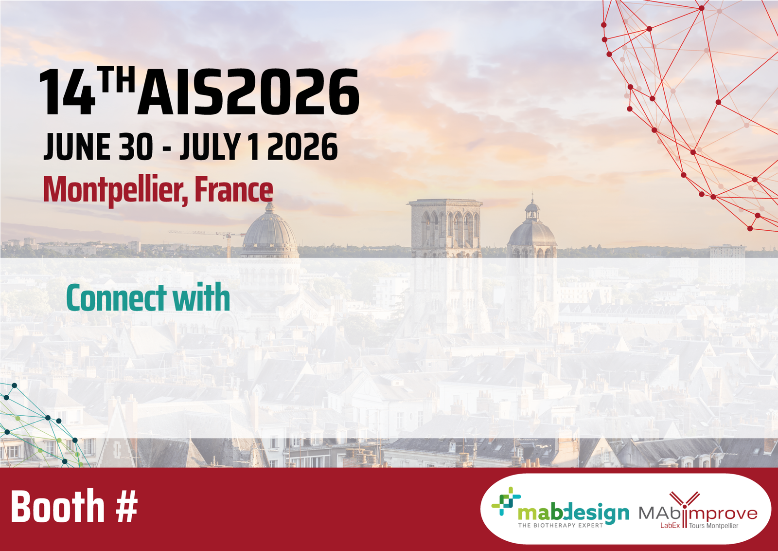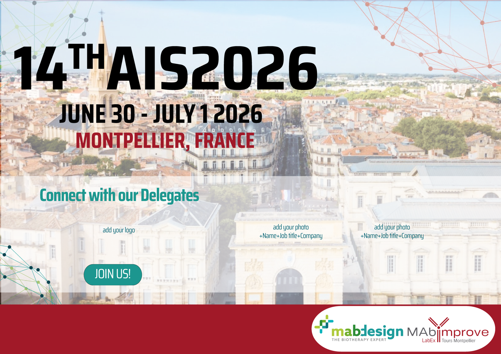 The 14th Antibody Industrial Symposium AIS2026 jointly organized by the scientific society LabEx MAbImprove and MabDesign, the French association of the Biotherapy Industrial sector, will be held on June 30 – July 1 2026, in Montpellier, France. The AIS2026 is the ideal conference for scientists, industrials, clinicians, and policy makers to exchange about therapeutic antibodies and more! This year’s 2-days-programme is organized into several tracks covering the hot topics in antibody, recombinant proteins, and other biopharmaceuticals research and development. Moreover, the program will allow opportunities for one-to-one meetings, companies to showcase their new products and technologies virtually as well as dedicated time for business partnering.